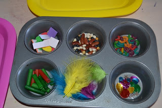 Clean up was very easy. Anything left in their muffin tins was easy to put back into its compartment for next time. It really wasn't mixed up too much especially compared to if we had used an undivided container for each child or left the bits and bobs loose on the tray. The misc supplies went back in the basket, trays away, wipe off the table and done!